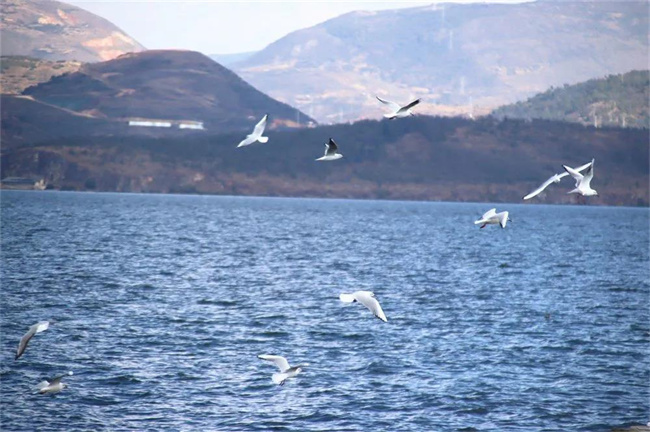 看海鷗在湖面翩翩起舞