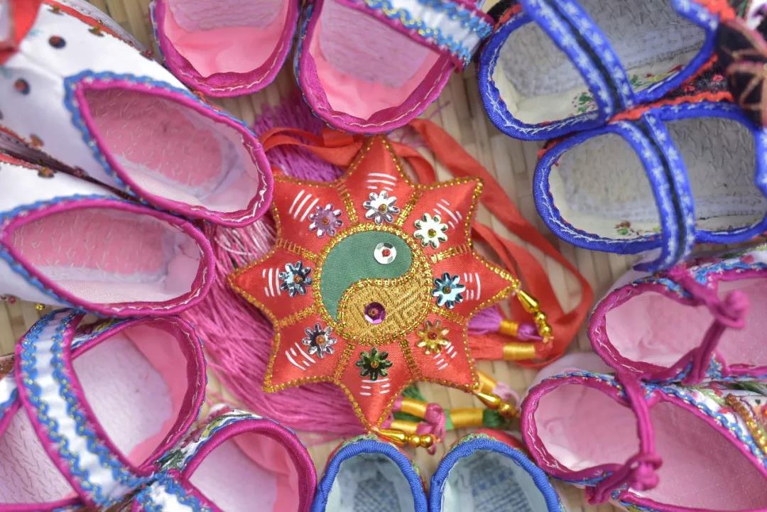 為祈求平安,防身驅(qū)蟲,每年五月端午,劍川家家戶戶都要制作或購買大量布扎。在門前掛一個大的八卦形布扎,隨身攜帶小一點的布扎以除穢保健,小娃娃們往往還要特別照顧,要花花綠綠的掛上一長串。除了端午節(jié)辟邪防身外,布扎還是白族遷居的吉祥物和青年男女表白愛意的信物。