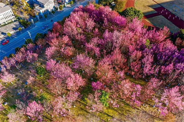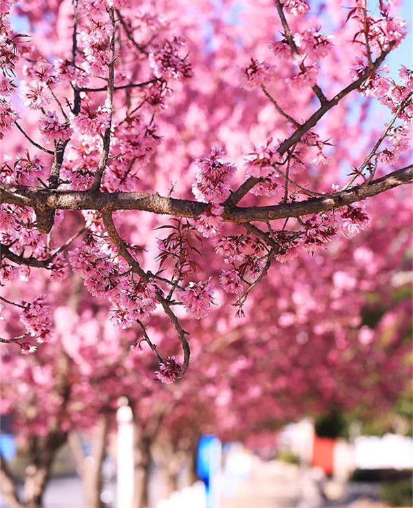 成片的粉色彌漫枝頭