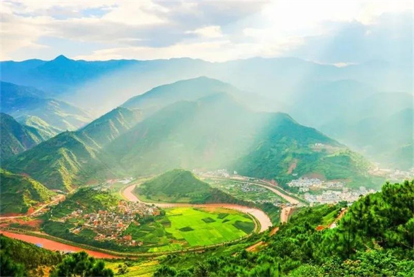 云龍風(fēng)光無(wú)限好,在云龍縣城北面,有一幅巨大的“太極圖”。太極圖處于群山環(huán)抱之中,目之所及皆是蒼翠清幽,猶如人間仙境。