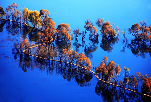 金秋時節(jié),漫步在龍?zhí)杜?,看青山隱隱水迢迢,賞樹樹皆秋色,沉浸于詩意的時光里。
