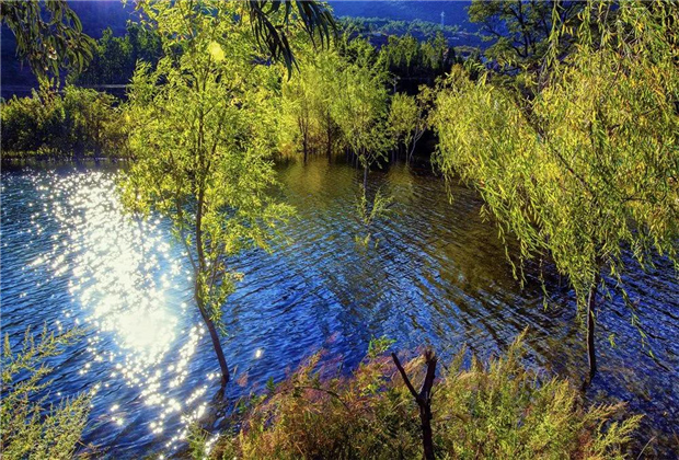 一汪清水,石堤蜿蜒,古柳梳風(fēng),幾多景致……鶴慶黃龍?zhí)兜那锾?,美如一卷丹青古畫,讓人萬般留戀。