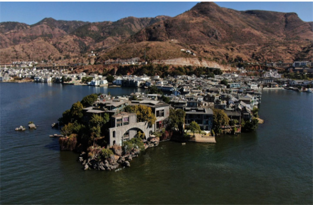 用無人機(jī)飛至上空,俯瞰整個南詔風(fēng)情島,目光都被眼前這座覆蓋著郁郁蔥蔥植被的小島所吸引,在奇異獨(dú)特的地形地貌中,猶如一把巨梭,靜臥在藍(lán)天之下,碧水之中的洱海中上游,在碧波蕩漾的水面上熠熠生輝。
