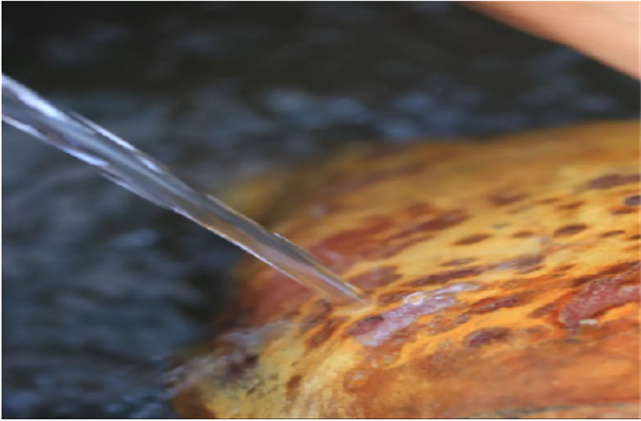 云龍縣諾鄧馬金橋商貿(mào)有限責任公司創(chuàng)始人徐琨斌介紹:“火腿采用的原材料是村里村民用玉米、大豆及野生綠葉植物飼養(yǎng)的諾鄧烏金山豬,產(chǎn)出的豬膘肉肉質(zhì)細膩、瘦肉多,口感十足?!?/span>