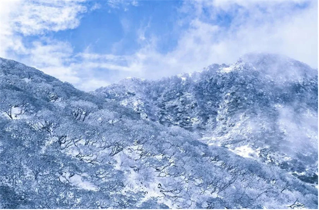 繼續(xù)向上云霧散開到達洗馬潭景區(qū)銀裝素裹的世界映入眼簾。