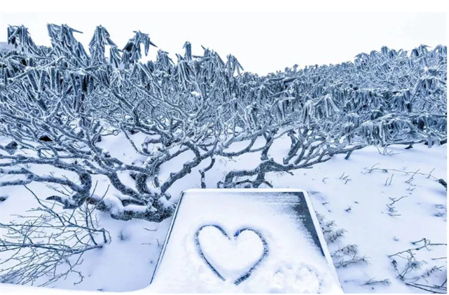 雪花迎風起舞樹枝上的雪粒子也開始晃動一同迎接游人的到來。
