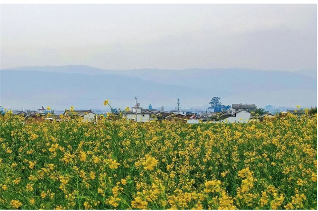 在彌渡,油菜花田迎來了一年中最為燦爛奪目的時(shí)候。大片大片的黃花,在太陽的照耀下,亮閃閃、金燦燦的,甚為光彩奪目。黃的花、綠的葉,相搭互配,與藍(lán)天、白云、村莊、田壟一道,構(gòu)成一道亮麗的風(fēng)景線。