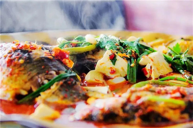 “家財萬貫不如魚湯泡飯?!痹诖罄?,幾乎家家會做酸辣魚,其味美鮮香、酸辣可口、百嘗不厭,一直以來都是白族家宴上的主角以及待客的“招牌”?!澳昴暧杏唷钡拿篮迷竿?,都煮進了一鍋紅紅火火的期盼里。大理酸辣魚以洱海鯽魚為主材,配以紅椒、青椒、木瓜、楊梅或烏梅為原料,用土灶燒柴火煮成,有時還會放入土豆和豆腐作為輔料,滿滿的一盤“色誘”,酸、辣、鮮、香,令人食欲大開。