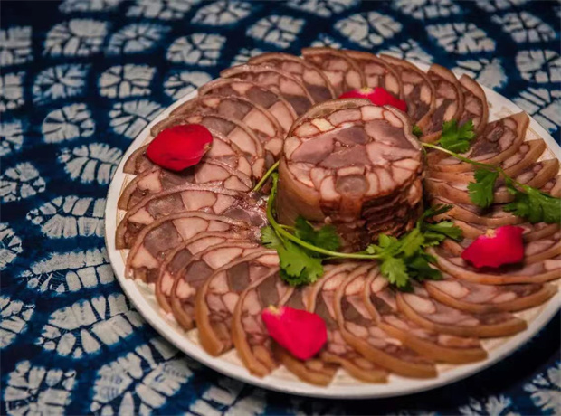彌渡卷蹄是彌渡特有的傳統(tǒng)手工技藝發(fā)酵肉制品。將豬蹄拔毛洗凈、剔骨,將肉切成條塊狀,加入彌渡特有的紅粬米和草果、食鹽等腌制,腌好的肉條塞進豬腳,用稻草扎緊后,煮熟腌制而成,因成品形同新鮮的豬腳,故而得名。早在明朝時期,彌渡卷蹄就被列為宮廷名菜,有“500年一種吃法”的美譽。其色澤紅白透明,肉質鮮嫩,肉香濃郁,食而不膩,冷吃或熱食皆美味可口。