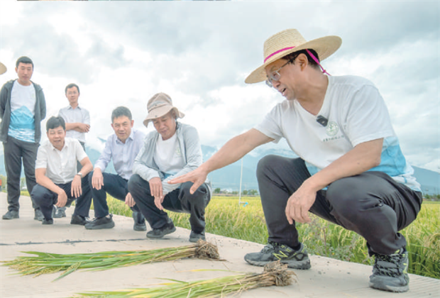 張福鎖(右一)和小院師生在云南大理古生村了解水稻種植情況。趙渝 攝