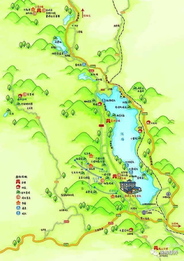 洱源縣地處麗江、大理、迪慶三大風(fēng)景區(qū)的樞紐地帶,有良好的區(qū)位優(yōu)勢和風(fēng)格多樣的旅游資源。境內(nèi)風(fēng)景區(qū)名勝眾多,多達(dá)200余處,可分為西湖、茈碧湖、海西海、鳥吊山景區(qū)。茈碧湖清如碧玉,它不僅盛產(chǎn)“巳時(shí)開放而未時(shí)收”的珍稀植物“茈碧花”而著名,而且還因湖中奇異的“水花樹”和羆谷山麓宛若世外桃源的梨園景色而令人神往;西湖水鄉(xiāng)湖中有村,村中有湖,柳岸蘆灣,煙渚漁歌,“翛翛然有江南風(fēng)景”;海西海青山環(huán)抱,漪瀾靜謐;鳥吊山松濤窸窣,杜鵑燦爛,更有百鳥朝鳳的奇觀。境內(nèi)還有許多奇峰幽洞、林海甘泉,以及霧蒸霞靄的溫泉、如雪花撒落的梅園。