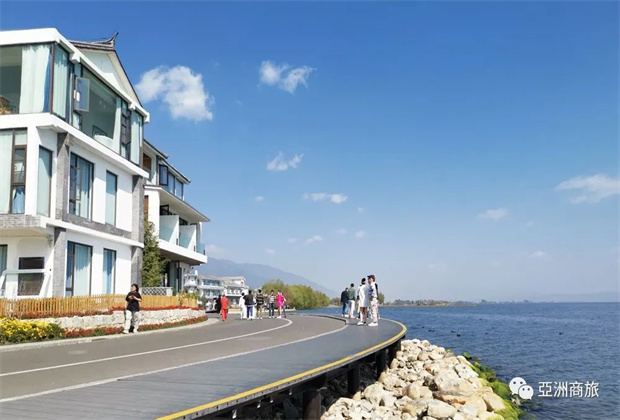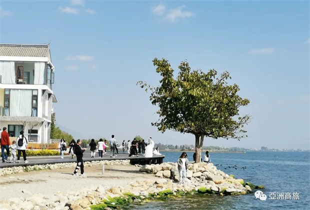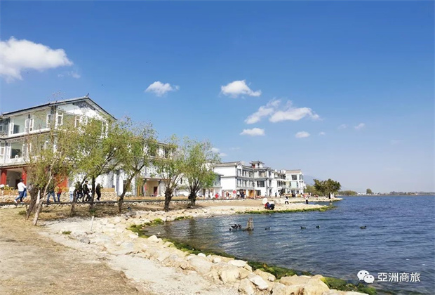 網(wǎng)上紅爆的磻溪村S彎就是在喜洲古鎮(zhèn)附近,當(dāng)?shù)鼐用褚园鬃鍨橹?,最近發(fā)展旅遊業(yè),將白族的房屋改建為民宿,民宿極近湖邊,有廣闊的視野觀賞蒼山洱海的美景。磻溪村S彎每年冬春季節(jié)可以看紅嘴鷗(白色),小野鴨(黑色),夏天看白露,是青年人打卡或新婚夫婦拍婚紗照的好地方。