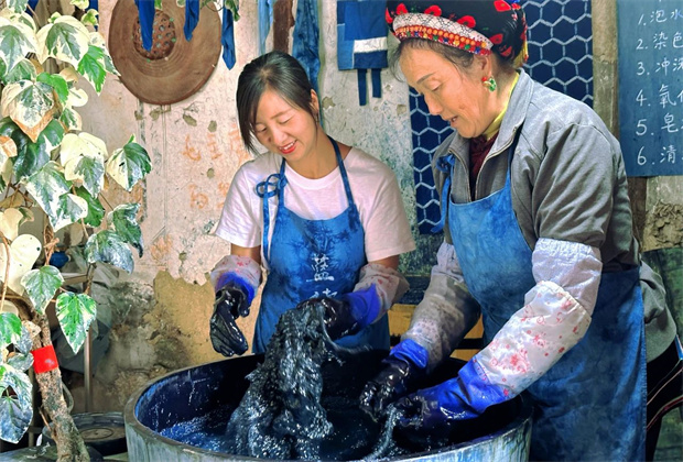 上綜藝、走秀場(chǎng)、進(jìn)課堂、出國(guó)門,扎染時(shí)裝新品、文創(chuàng)產(chǎn)品火爆暢銷,通過(guò)文化交流互鑒而創(chuàng)新發(fā)展,走出喜洲,走向世界。