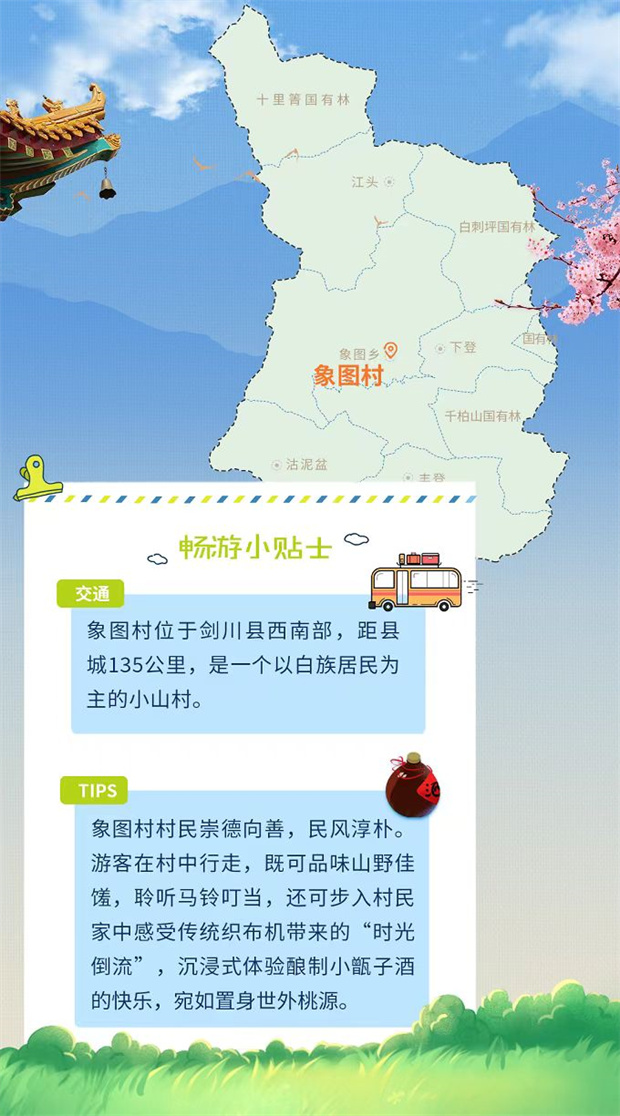 村內(nèi)古水井、古戲臺(tái)、古照壁、古民居、古道、古樹(shù)一應(yīng)俱全。象圖村人講白語(yǔ),多以種植業(yè)和養(yǎng)殖業(yè)為生,村內(nèi)婦女擅長(zhǎng)用傳統(tǒng)織布機(jī)手工織布、用小甑子釀制大麥酒,并以此聲名遠(yuǎn)揚(yáng),被稱(chēng)為“云南省內(nèi)山上白族第一村”。