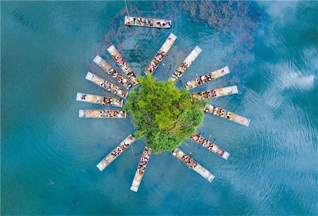 人在湖中游,思隨流水飄。湖這時就成了一本流淌的哲理書。淌過一頁又一頁,它的清澈、浩瀚、深邃、神秘、鮮活一一慰藉著久未安靜的靈魂。耳邊的風聲,水聲,通通成了過濾器,將靈魂的一切雜質(zhì)過濾了,煥發(fā)出純潔的光芒。