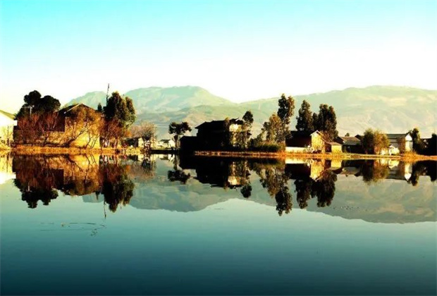 置身洱源西湖,仿佛置身一個神秘的天國。除了風聲、歌聲、鳥聲,整個西湖闃寂無聲。秋日的余暉輕輕拍打著它,它仰天向上,把神秘的幸福密碼深壓在身下?!昂馐幯鷰谆丶y,漁父歌聲鬧水濱,信口舢敲湘漢句,斷腸弄笛雁鴻云。三三對白煙蓑合,兩兩歸帆獲岸分。最趁夕陽含缺處,前村沽酒帶余醺?!痹谶@樣一幅背景中,偶爾還能看到牧童嬉鬧,大娘浣衣,村姑笑吟。