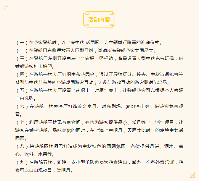 在這一天,以月為媒,家人團(tuán)聚共度佳節(jié)。洱海游船分公司借此佳節(jié)良辰之際,開(kāi)展“夢(mèng)幻中秋夜 光影全家?!?/span>