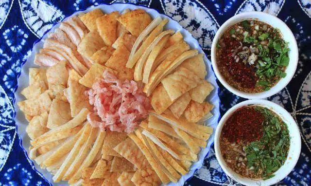 生皮是大理一帶的白族人民傳統(tǒng)的待客名菜,吃生皮的習俗相傳始于南詔時期,至今深受人們喜愛。凡是有白族人聚居的地方,一定有人吃生皮。所謂的生皮,就是在殺豬的時候,用稻草火燒去毛,故有“白族火燒豬”的美譽,因為口感鮮嫩,且營養(yǎng)豐富,沒有半點腥味,千百年來一直是當?shù)匕鬃迦罕娮钕矏鄣拿耖g菜肴。