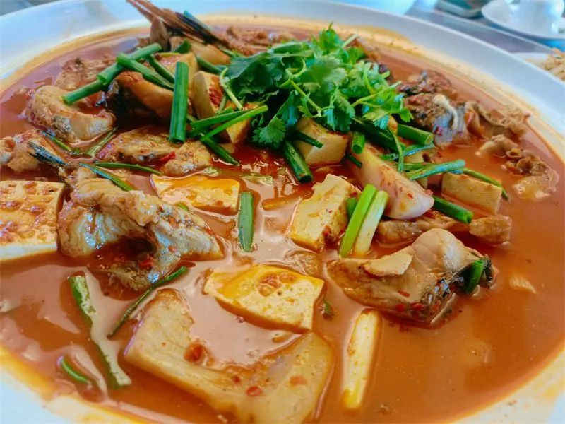 源于海稍水庫的賓川海稍魚,是由賓川本地水源養(yǎng)殖的一種白鱗魚現(xiàn)殺現(xiàn)烹而成,魚湯鮮美可口、肉質(zhì)細(xì)嫩,有酸辣和清湯兩種口味。以酸精(檸檬精)、紅辣椒面、青蒜苗、洋芋等為主要原料,海稍魚采用獨特的烹飪技藝加工而成,一碗熱油澆淋制成的麻辣蘸水,更是海稍魚的味道“靈魂”。