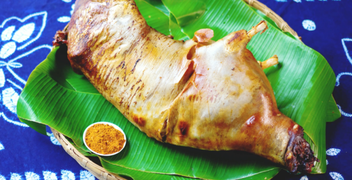 在漾濞,人們常以烤全羊款待賓客,一只只烤熟后的肥羊外焦里嫩、鮮而不膻,令人垂涎欲滴。漾濞烤全羊已經(jīng)成為響當(dāng)當(dāng)?shù)囊粋€招牌,帶動了漾濞縣休閑度假旅游業(yè)的發(fā)展??救蛲獗斫瘘S油亮,焦黃脆香,里肉則鮮嫩可口,香味撲鼻。以刀分割成二至三指寬窄的小塊小條,置于盤中,佐以醬油、油辣椒等,動箸開餐,軟脆清香。再點上一份核桃大餐,佐以清酒,在美妙的滋味中沉淪。