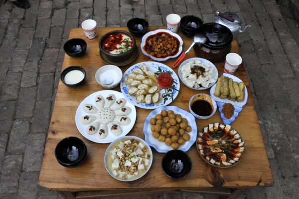 “寧可一日無肉,不可一日無豆?!睆浂擅莒砣怂坪跆貏e鐘愛豆腐,勤勞智慧的人們用珍珠泉水制作而成的豆腐質(zhì)地柔韌、入鍋不爛,一塊豆腐便可做一桌“滿漢全席”。走進(jìn)文盛街的一家農(nóng)家樂,品味通過炸、煮、蒸、炒、煎等方法烹飪的豆腐宴。豆腐丸子、麻辣豆腐、開心豆腐、雞蛋松豆腐……每一道菜品都色香味俱全,慰藉著食客舌尖上的鄉(xiāng)愁。