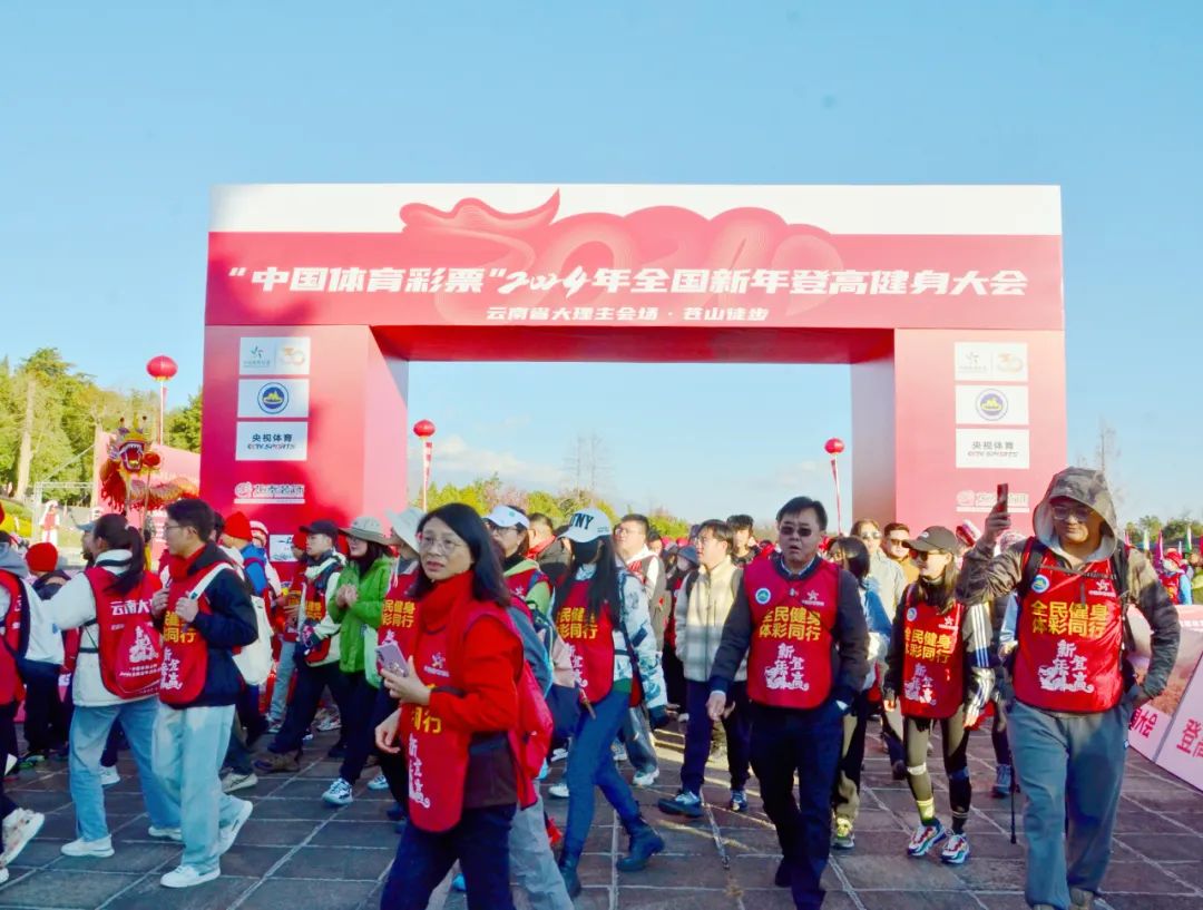 1月1日上午9時,“中國體育彩票”2024年全國新年登高健身大會云南省大理主會場·蒼山徒步活動在大理崇圣寺三塔永鎮(zhèn)山川廣場舉行。