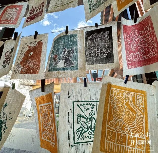 甲馬藝術(shù)館前,有一副巨大的甲馬群像,將大理地區(qū)各個(gè)村子的不同本主以甲馬版畫的藝術(shù)形式展現(xiàn)出來,結(jié)合了白族本主文化與省級(jí)非遺甲馬兩項(xiàng)民間藝術(shù)。曾經(jīng)菜市場(chǎng)上兩三毛錢一張的甲馬,如今通過完善的傳承保護(hù)體系,實(shí)現(xiàn)了創(chuàng)造性轉(zhuǎn)化與創(chuàng)新性發(fā)展,在酒吧、民宿、文創(chuàng)產(chǎn)品中隨處可見,成為裝點(diǎn)生活的時(shí)尚元素,成了外來游客關(guān)于“大理印象”的重要視覺元素,也是了解大理民間智慧與美學(xué)的窗口,廣受年輕人追捧。