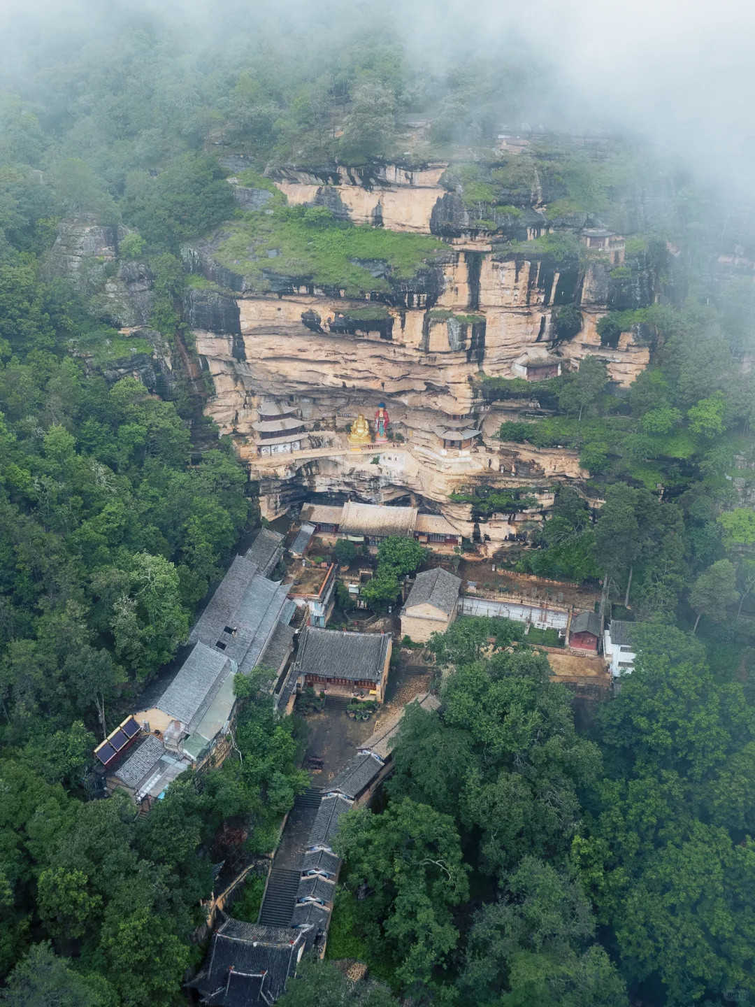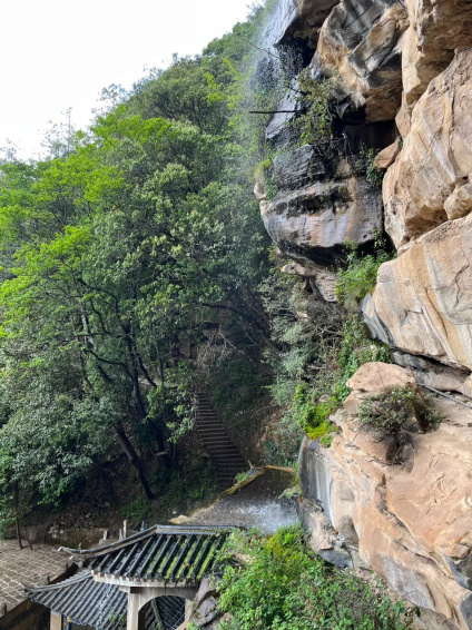 寺內(nèi)佛像依于崖壁而建,飛瀑垂簾,聳巖含閣,山上被濃霧籠罩,山下還有些很多猴子松鼠跑來(lái)跑去,到那邊的一瞬間,就感覺(jué)自己穿越到了一個(gè)隱世的修仙門派!