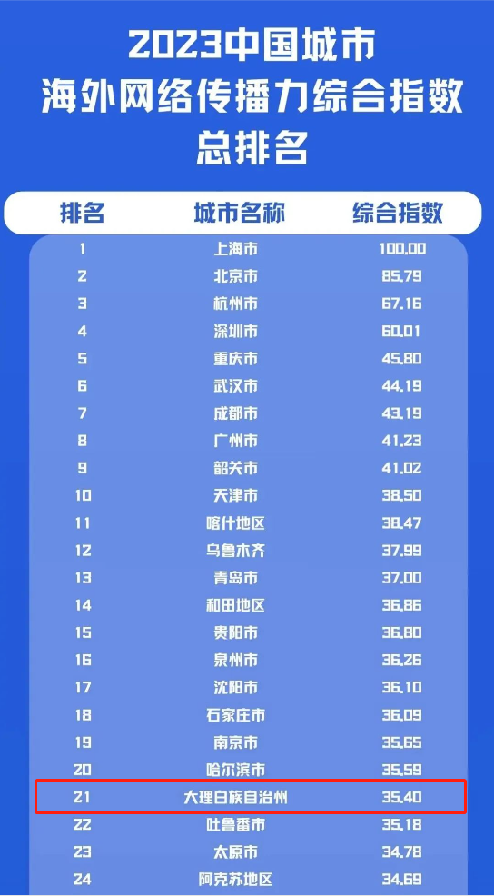 2023中國城市海外網(wǎng)絡(luò)傳播力綜合指數(shù)總排名
