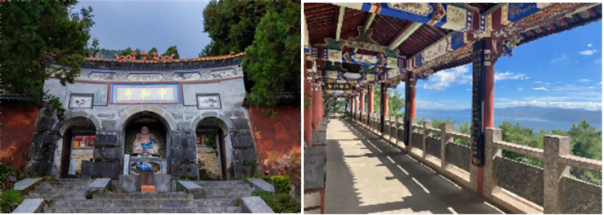 中和索道是路途最短,最為幽靜的一條線路,卻也最為驚險刺激,敞篷小纜車,一路感受林海濤濤,山風(fēng)佛面。中和索道盡頭位于“中和寺”所以得名“中和索道”。這一條索道不同于感通索道和洗馬潭大索道,因為中和索道的轎廂不是全封閉式的,而是兩人座開放式索道,可以很直觀的感受到空氣中的涼意和懸空的感覺。因為是開放式露天吊籃索道,坐在索道上可以將大理洱海和蒼山間的這一片空地上的布局瞧得一清二楚,加上路程短,所以這一條索道可風(fēng)雨無阻的體驗蒼山美景。中和索道除了索道上可以觀賞美景,在索道的盡頭還有一座在大理很有名的寺院——中和寺,它位于蒼山十九峰的中心山峰山上。中和寺地處蒼山中和峰東麓,擁有得天獨厚的自然風(fēng)光和地理位置,寺廟依蒼山山勢而建,四周蒼翠蔥郁,松林環(huán)繞,身處其中能感受到大自然的靜謐和諧,與道教追求人與自然和諧相處的理念相得益彰。中和寺看似不起眼,但是它的歷史文化非常悠久,它的源頭可以追溯到唐代的南詔國時期(公元738年~902年),經(jīng)歷了多個朝代的修葺與重建,明代嘉靖年間曾得到大規(guī)模修繕,在清代受到官方高度重視,清朝康熙皇帝曾為中和寺題寫了“滇云拱極”的御賜匾額,進(jìn)一步提升了中和寺在大理乃至整個中原地區(qū)的文化地位和社會影響力。不幸的是,在清咸豐年間寺廟遭受了嚴(yán)重破壞,后來在光緒年間又進(jìn)行了重修?,F(xiàn)保護(hù)下來的凌霄寶殿、正大殿和聚仙樓依舊保持著清光緒二十六年重修中和寺時的建筑風(fēng)格。