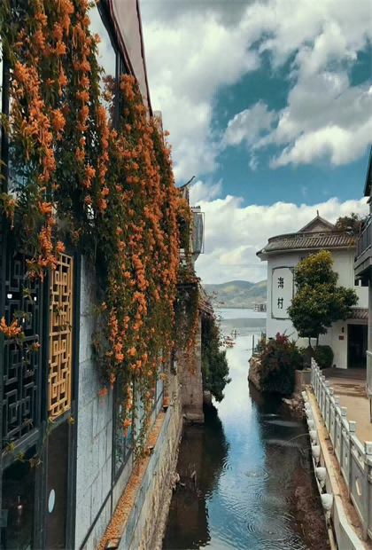 都說大理風(fēng)光在蒼洱,蒼洱風(fēng)光在雙廊,雙廊被稱為蒼洱風(fēng)光第一鎮(zhèn)。作為千年漁村的雙廊古鎮(zhèn),它地處大理市洱海東北岸,東靠佛教名山雞足山,西跳蒼山十九峰,門臨洱海萬傾波。古鎮(zhèn)三面環(huán)山,一面緊靠碧波蕩漾的洱海,被稱為“蒼海風(fēng)光第一鎮(zhèn)”,景色古樸優(yōu)美,充滿著文藝清新的氣息,賞洱海風(fēng)光,將秀麗風(fēng)光盡收眼底。在上關(guān)花,下關(guān)風(fēng),蒼山雪,洱海月“風(fēng)花雪月”的大理,雙廊的美,是那種吹著細(xì)風(fēng),置身花海,沐浴著千年文明的愜意。走在這里,仿佛置身歐洲小鎮(zhèn),鮮花滿目,空氣干凈澄澈。