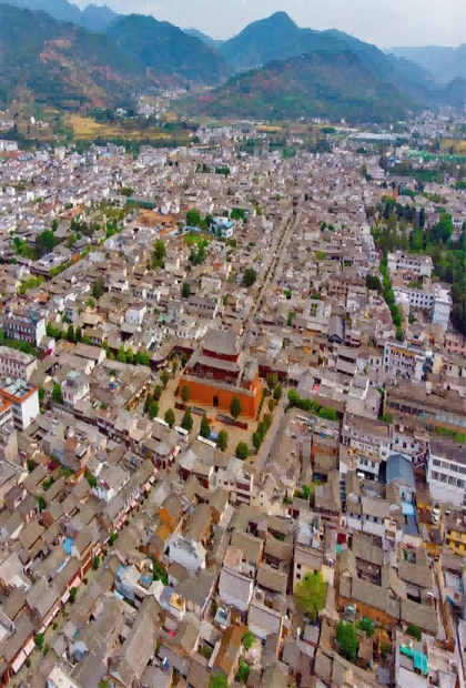 巍山古城:巍山古城內(nèi)街道以拱城樓為中心,呈標(biāo)準(zhǔn)的井字結(jié)構(gòu)建設(shè),共有25條街道,18條巷,全長14千米,城內(nèi)房屋基本保持了中式結(jié)構(gòu),南、北主軸線兩側(cè)的房屋則完整地保存了明、清時代的建筑式樣和風(fēng)格。古城內(nèi)的民居多數(shù)是院落式的,保持了大理白族的“三坊一照壁”“四合五天井”土木結(jié)構(gòu)的特色,北門外的二條街道是主要居住區(qū),臨街為鋪面及大門,寬度一般為67米,后面為住宅。巍山古城筑有城墻,東西南北四個城門,城中心建星拱樓,古城形方如印。古城里建有文廟和古城博物館,集中展示了“文獻(xiàn)民邦”和“民俗文化”的完美結(jié)合。在博物館以南,有古廟等覺寺。這座寺廟的大部分在清咸豐年間被毀,現(xiàn)僅存寺院外的雙塔和寺院內(nèi)的太陽宮,后者始建于明永樂年,建筑單檐歇山頂,面闊五間,四周設(shè)廊,檐下施重昂斗拱,粗大古樸。