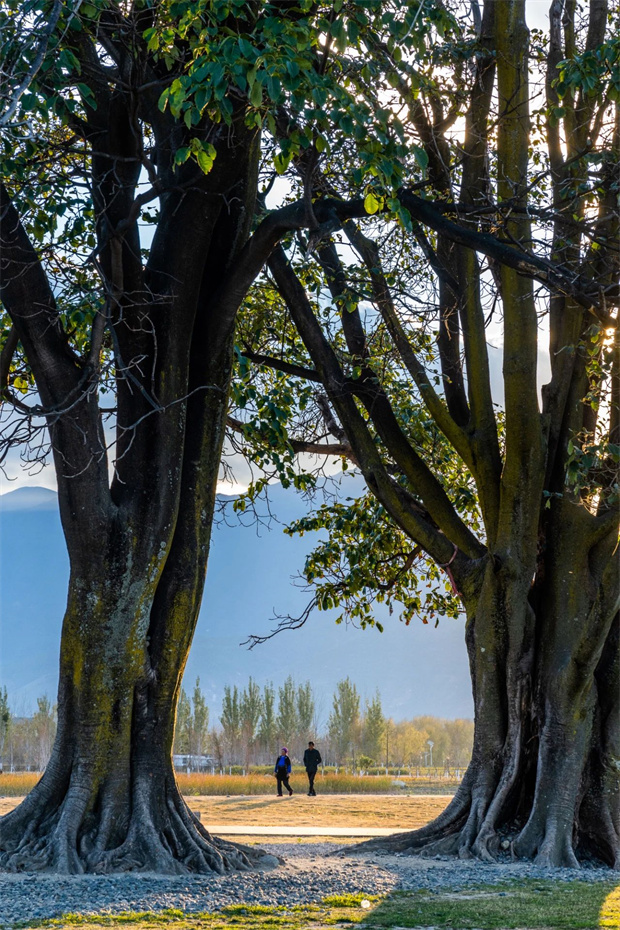 在喜洲夫妻樹想,作一首情定之詩;在喜洲與鄉(xiāng)野為鄰,在夫妻樹下合影留念,許下“喜結(jié)連理”的美好愿望。