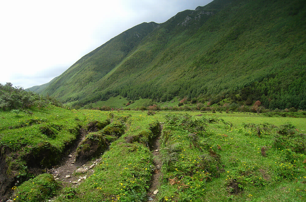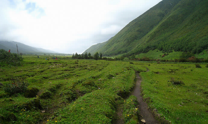 云南大理花甸壩,是蒼山頂上一塊美麗富繞的盆地,坐落在云弄、滄浪兩峰之間。這里是蒼山僅存的尚未正式開發(fā)的地區(qū),是徒步者的天堂。平坦的草甸寬闊無邊,仿佛一直延伸到了天的盡頭。