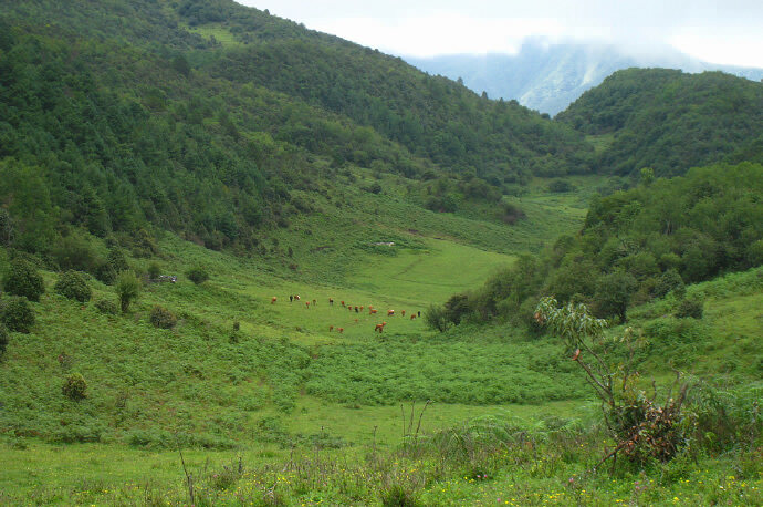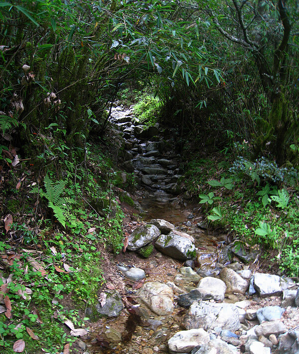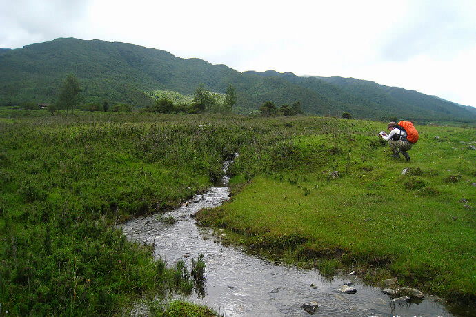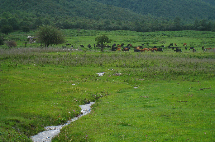 第二天約爬2小時(shí)山至小花甸埡口,之后徒步小花甸約一個(gè)小時(shí)左右,隨后開始水路下山,出發(fā)前一定要問場(chǎng)長(zhǎng)方向,方向錯(cuò)了就走到洱源縣的鳳羽去了。