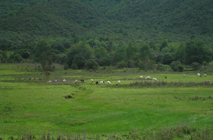自由散漫地行走在綠色無邊的壩子里,牧草肥美,景色宜人??仗幗^人煙,只有靜,只有閑。