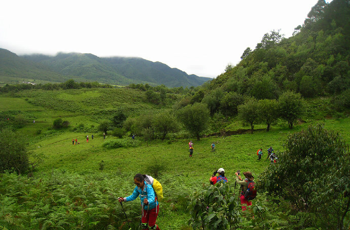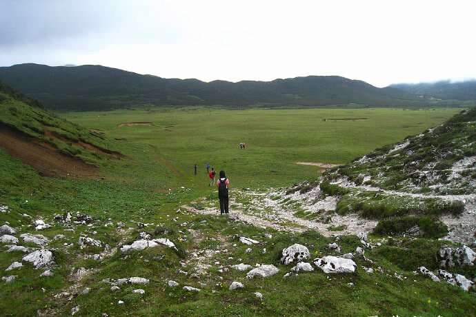 云南大理風(fēng)景區(qū)花甸壩,是蒼山頂上一塊美麗富繞的盆地,坐落在云弄、蒼釀兩峰之后,海拔二千九百公尺,南北長(zhǎng)二十多公里,東西寬約三公大理戶外拓展徒步旅行-花甸壩里。