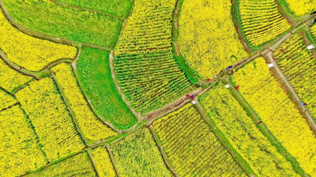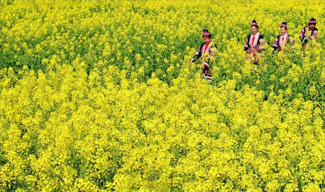 雖不及梅花的傲骨、桃花的嬌嫩,但自古以來也有無數(shù)文人墨客為油菜花寫詩作詞。其中唐代詩人楊萬里的《宿新市徐公店》就描寫了油菜花田的美麗:“籬落疏疏小徑深,樹頭花落未成陰。兒童急走追黃蝶,飛入菜花無處尋。”菜花深深、彩蝶翩翩,徜徉花海,別有一番天地。