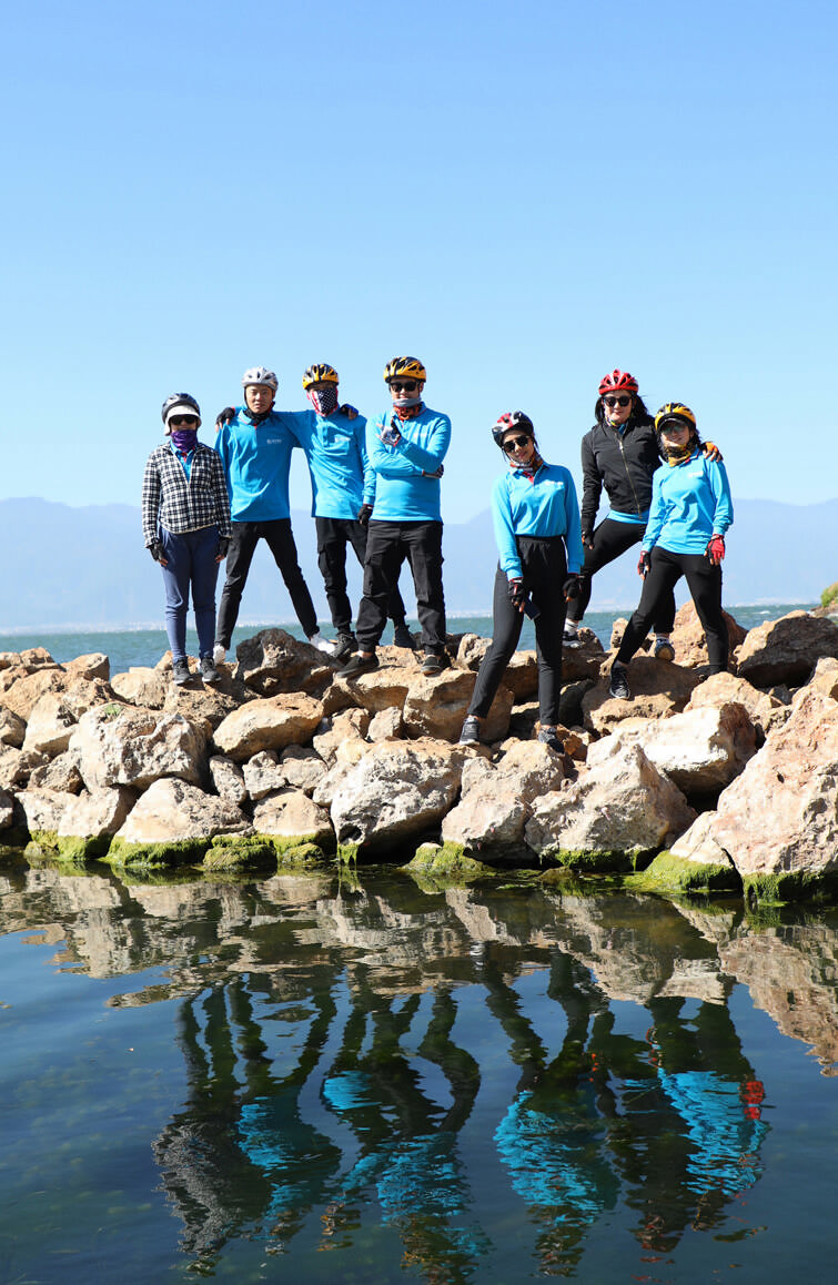 清晨,62名員工身著統(tǒng)一服裝在高鐵站集合,晌午時(shí)分抵達(dá)大理白族自治州。雖已入冬,但大理的艷陽高照帶來輕松愉快的好心情。員工們戴上專業(yè)護(hù)具,開始了第一天的騎行活動(dòng)。整條騎行路線順延洱海東海岸線,共計(jì)22KM。在150分鐘的騎行過程中,大家欣賞著路途景色,感受著同事間的相互鼓勵(lì)和照顧,騎行路上充滿著溫暖與歡笑,全員順利抵達(dá)終點(diǎn)。一路上酷勁十足的騎行隊(duì)伍,形成一道逶迤流動(dòng)的長龍,惹得行人紛紛駐足觀看。