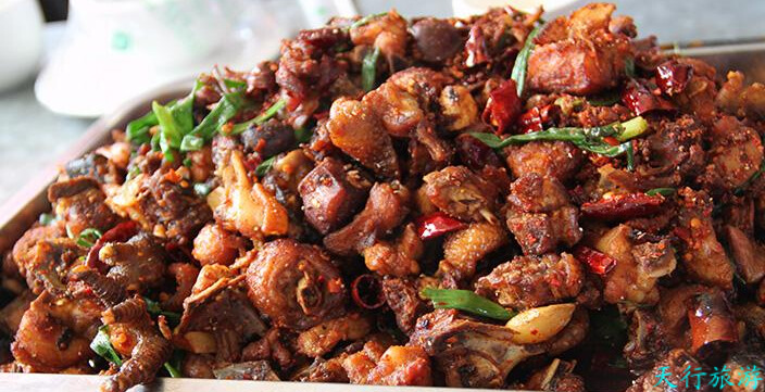 永平黃燜雞是采用永平山區(qū)土仔雞,選用優(yōu)質(zhì)純菜籽油、花椒、草果、大蒜、干辣椒、生姜、八角、蔥花等十幾種配料,輔以食鹽、味精、醬油等調(diào)味料,采用傳統(tǒng)工藝與現(xiàn)代烹飪技術(shù)相結(jié)合而獨(dú)創(chuàng)的地方風(fēng)味特色食品。通過(guò)一千多年的豐富和發(fā)展,隨著烹調(diào)技藝的不斷改進(jìn),“永平黃燜雞”已經(jīng)發(fā)展成為具有濃郁的永平地方民族風(fēng)味的特色菜肴而廣受眾多食客的青睞。山區(qū)養(yǎng)雞方便,放養(yǎng)就可以;吃起來(lái)也方便,麻利的店家,只十分鐘,就可以把一只飛奔的小公雞(仔雞)收拾成一盆黃香的燜雞,咬口嫩,嚼頭勁。