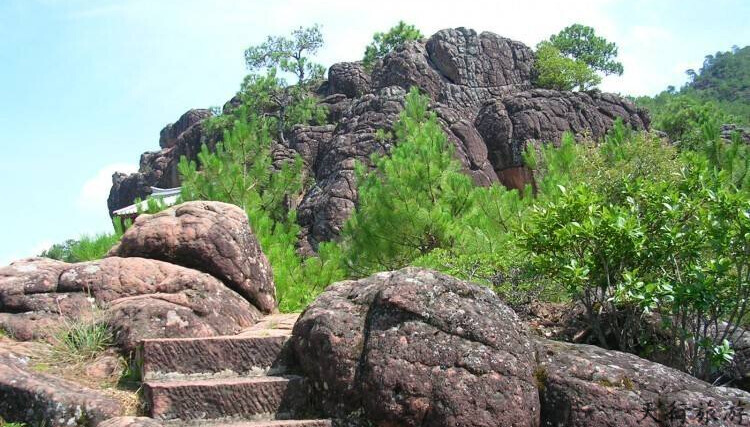 石寶山景色四季各異,孟春,大地復(fù)蘇,萬木蔥翠,群峰競秀,古道旁小草念珠露翠,密林中山茶含笑盛開;入夏,“馬纓花盛開,十余小朵,簇成一叢,殷紅奪目,與山茶同艷”(《徐霞客游記》),滿山遍野,五彩繽紛;深秋,紅葉似火,分外妖嬈;隆冬,還是翠綠如春,偶有降雪,山谷銀裝,儼然北國風光。
