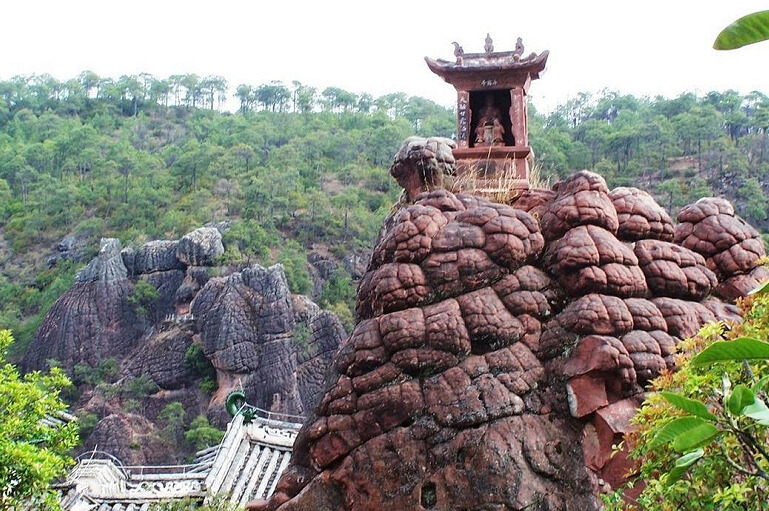 石寶山為丹霞地貌,球狀風(fēng)化石形成的奇峰異石如鐘、如箭、如獅、如象,高者成崖,錯(cuò)落有致,別具一格。