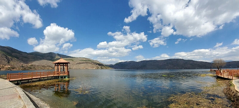 茈碧湖位于云南省大理洱源縣東北部,距洱源縣城約3公里,距大理以北73公里,距離劍川石寶山風(fēng)景區(qū)以南58公里。東、北靠山,西南連田,南北狹長(zhǎng),是高原斷陷溶蝕洼地形成的天然淡水湖泊,是洱海上游的主要湖泊之一,也是洱海的源頭了,鄧川壩子的灌溉水源主要靠它。