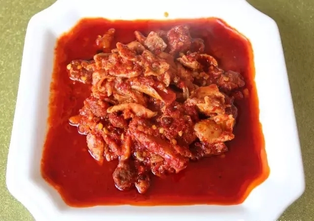 鶴慶人的餐桌上,最容易讓人忽視卻又必不可少的一道美味佳肴,便是那一碗紅艷鮮香的豬肝胙。制作香辣可口的豬肝胙,在冬、春兩季的鶴慶農(nóng)家中是一件充滿期待的事情。
