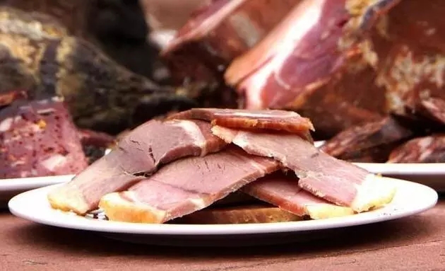 鶴慶火腿,又稱“圓腿”或是“盤(pán)腿”,源自其腿部彎曲、外形圓整的外形,那些掛在屋檐下的火腿,就如同一把把陳舊的琵琶,于無(wú)聲處彈奏著鶴慶人對(duì)于美食的演繹。