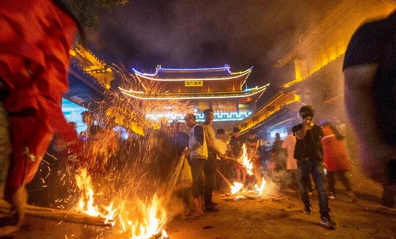 火把節(jié)是巍山流傳最廣的節(jié)日。每年的農(nóng)歷六月二十五這天,巍山人一大早就走出家門,采購節(jié)日用品。天色將晚,家家戶戶點(diǎn)起小火把,縣城廣場中央點(diǎn)起大火把,大家圍著火把縱情狂歡,整個(gè)巍山成了歡樂的海洋……