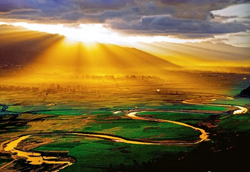 紅河孕育了古南詔國的文明,催生了云南各民族絢麗多彩的民族文化,滋潤了云南廣博的山川土地。紅河的發(fā)源地就在巍山一個(gè)靜謐而美麗的小山上,在源頭的旁邊豎立著一塊刻有“大紅河源、額骨阿寶” 的石碑。在彝族話里“額”是水之意,“骨”是彎彎曲曲,“阿寶”則是父親的同義語,連起來就是一條彎彎曲曲的父親河。與世界上其他被稱為母親河的河流不同,只有紅河被稱為父親河,這就是所謂的“紅河雄風(fēng)”,盡管它出發(fā)的態(tài)勢波瀾不驚,卻注定要奔向洶涌澎湃的大海!