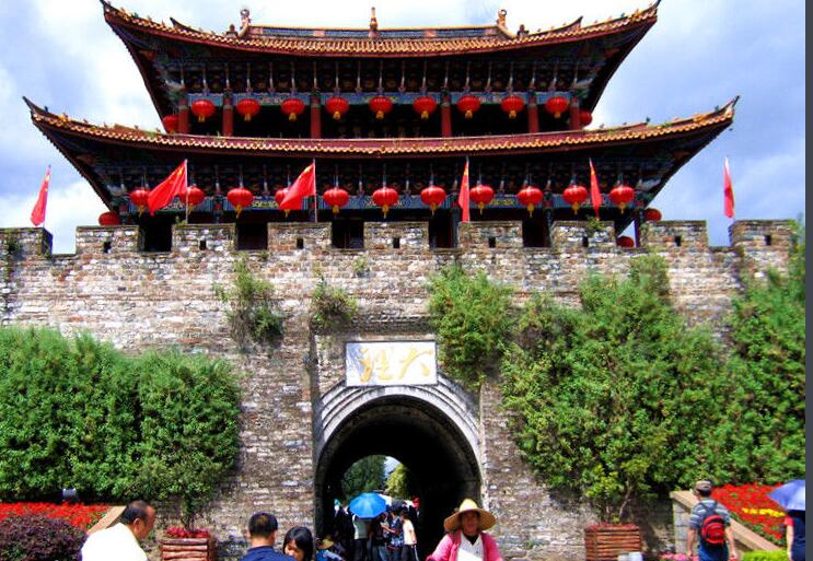 始建于明洪武十五年(1382年),為古城最古老雄偉的建筑,是大理古城的象征和標(biāo)志。古城墻四面各長約1500米、高6米、厚達(dá)12米。城門上“大理”二字是郭沫若1961年游覽大理時(shí)親筆所提,“大理”是國號(hào),意為“大治大理,富國興邦”之意。