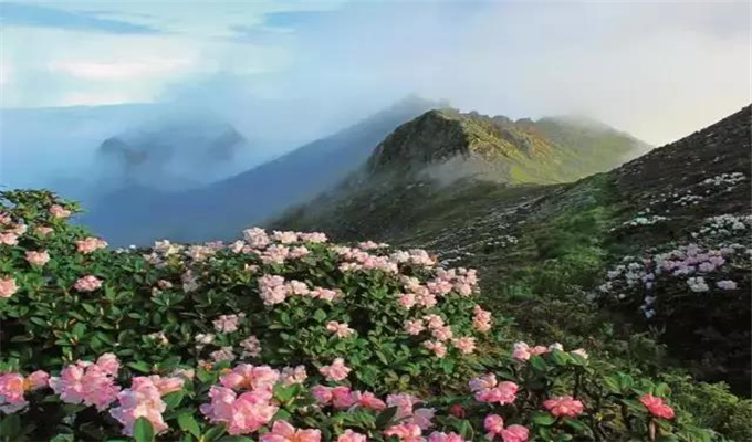 紅的似火,白的如雪,兩種相沖突的顏色,在這里異常和諧,還有粉色杜鵑、黃色杜鵑也緊接著盛放。