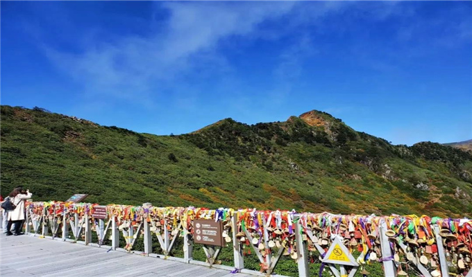 只有洗馬潭附近還盛放著零星的野花,天朗氣清,秋日爽朗就是這幅景象,沒有云霧遮擋的洱海就這么直接出現(xiàn)在眼前,湛藍(lán)的洱海與藍(lán)天互相輝映,秋意就這么在山巔流轉(zhuǎn),明媚的秋天,山峰都披著絢麗的色彩。